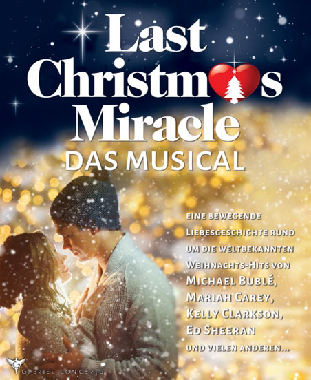 Das Musical “Last Christmas Miracle” entführt den Besucher in eine bewegende Liebesgeschichte rund um die weltbekannten Weihnachtshits von Klassikern wie z.B. von Dean Martin bis zu den mitreißenden Pop-Weihnachtssongs von Mariah Carey, Kelly Clarkson, Michael Bublé, Elton John, Ed Sheeran und vielen anderen. Jeder der beliebten Songs findet seinen passenden Platz.