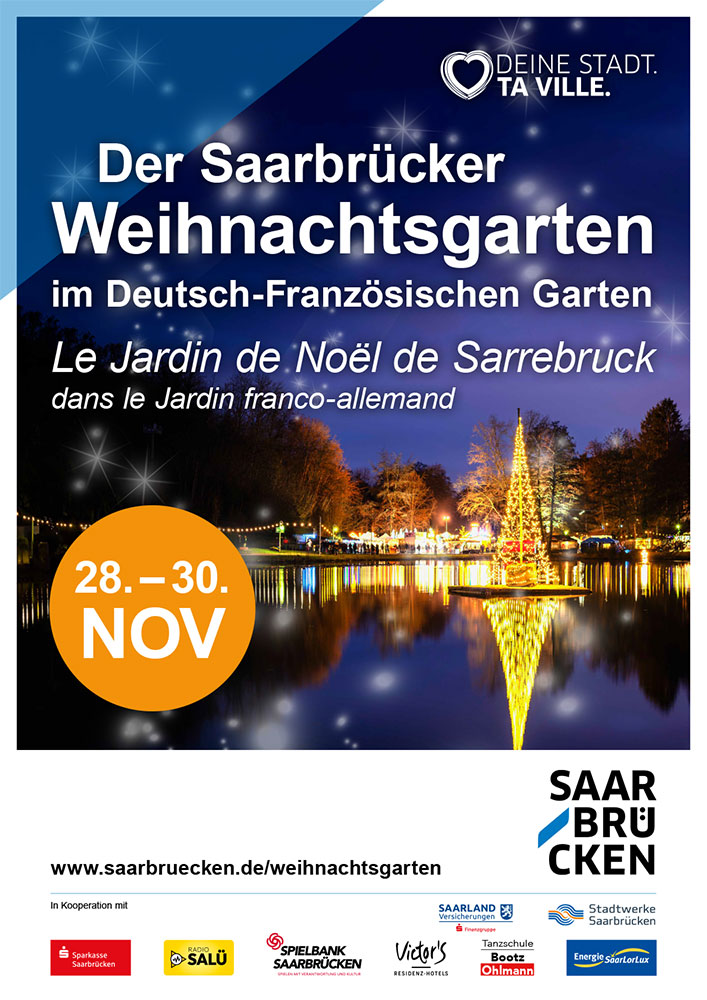 Der Weihnachtsgarten im Deutsch-Französischen Garten, eine Veranstaltung der Landeshauptstadt Saarbrücken, präsentiert von RADIO SALÜ und energie saarlorlux. Deine Energie von hier für morgen.