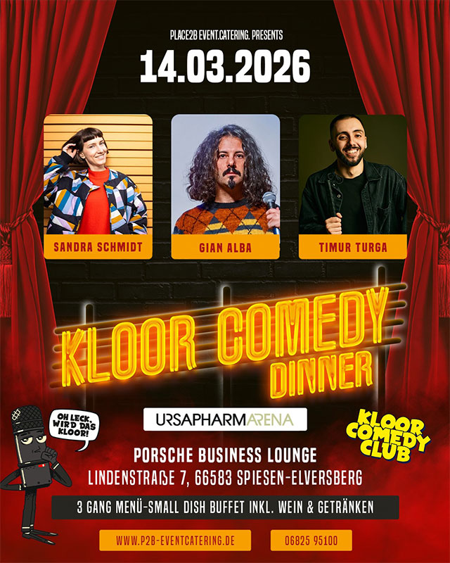 - Gian Alba – saarländisches Comedy-Talent mit Wahlheimat Berlin. Mit satirischem Blick und trockenem Humor nimmt er Alltag und Gesellschaft pointiert aufs Korn.