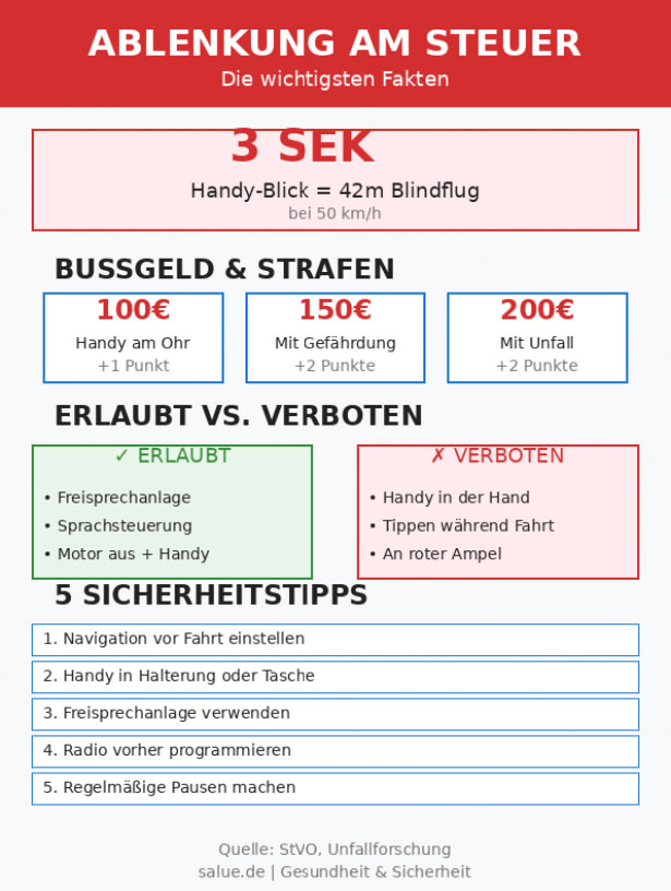 ✓ Einprägsame Statistik: 3 Sekunden Handy-Blick = 42 Meter Blindflug bei 50 km/h